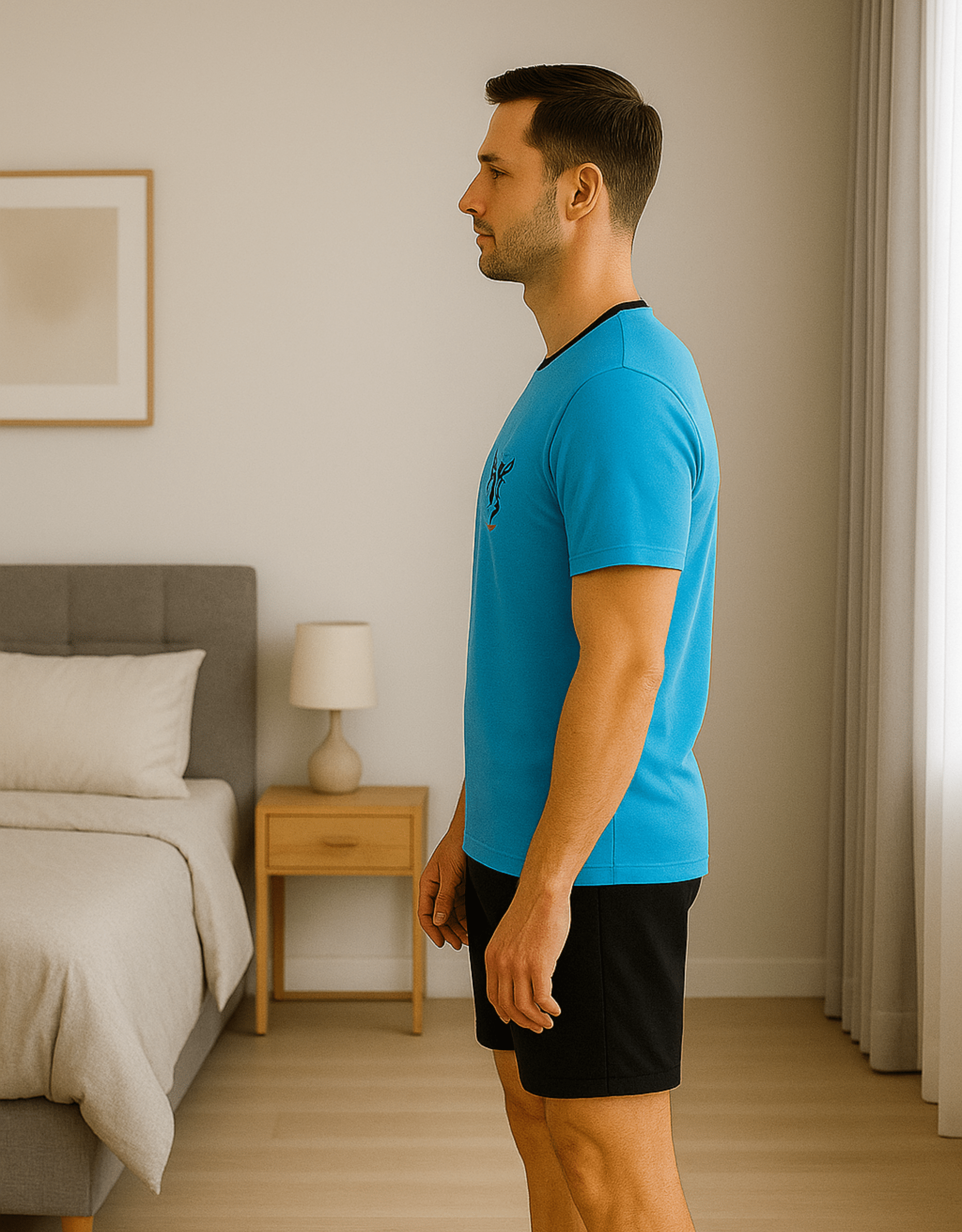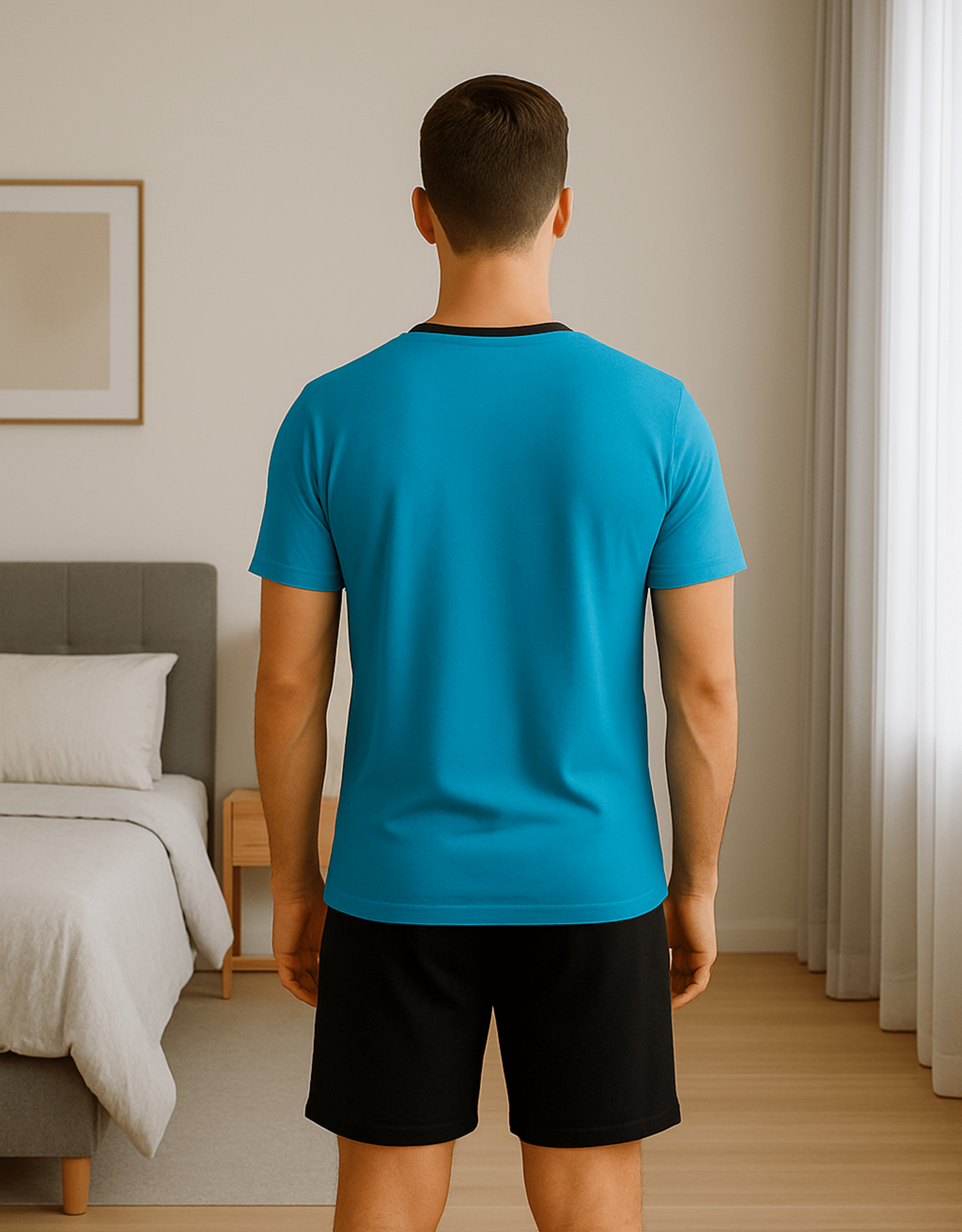 - Kurze schwarze Hose mit Gummizug