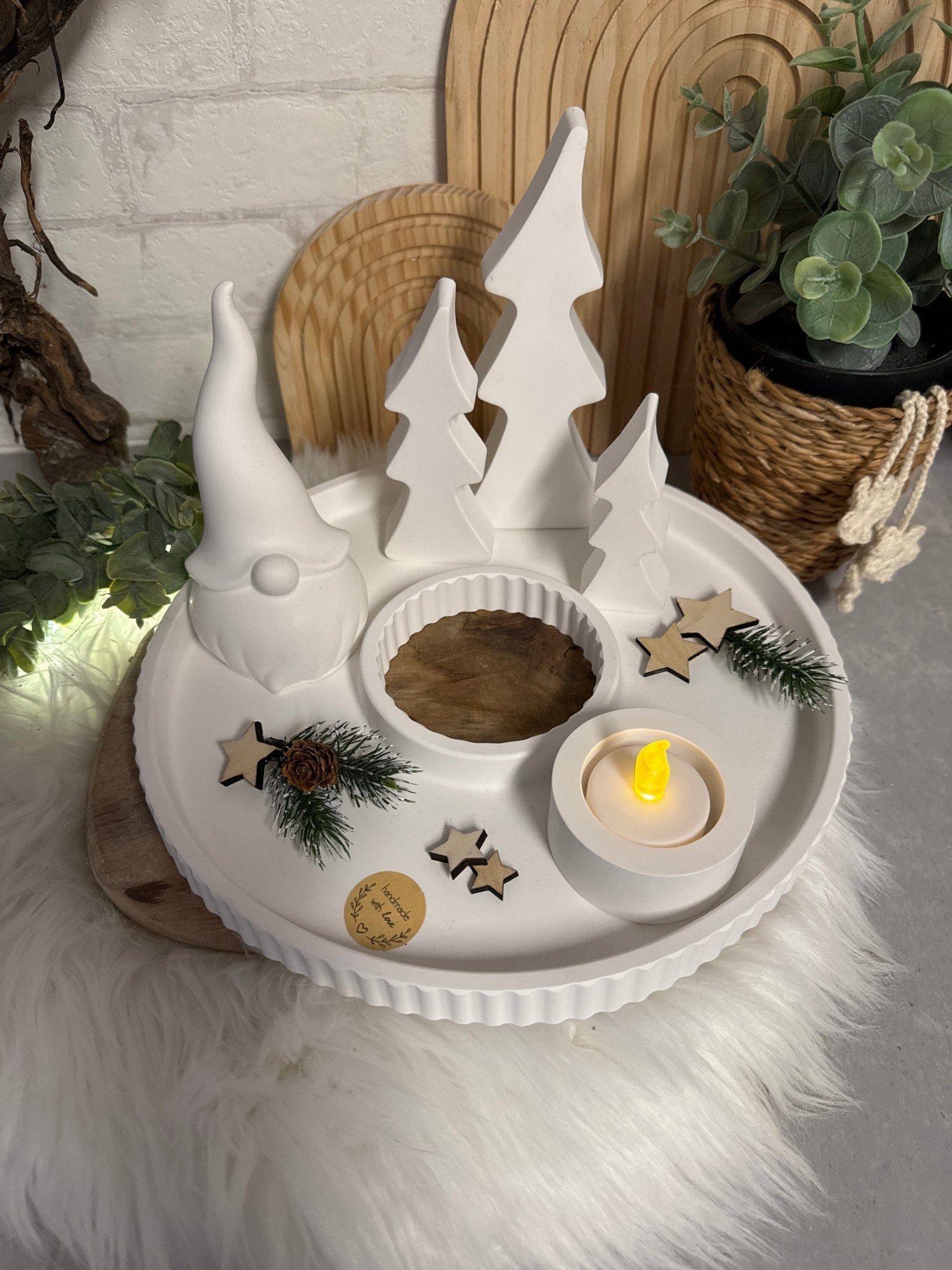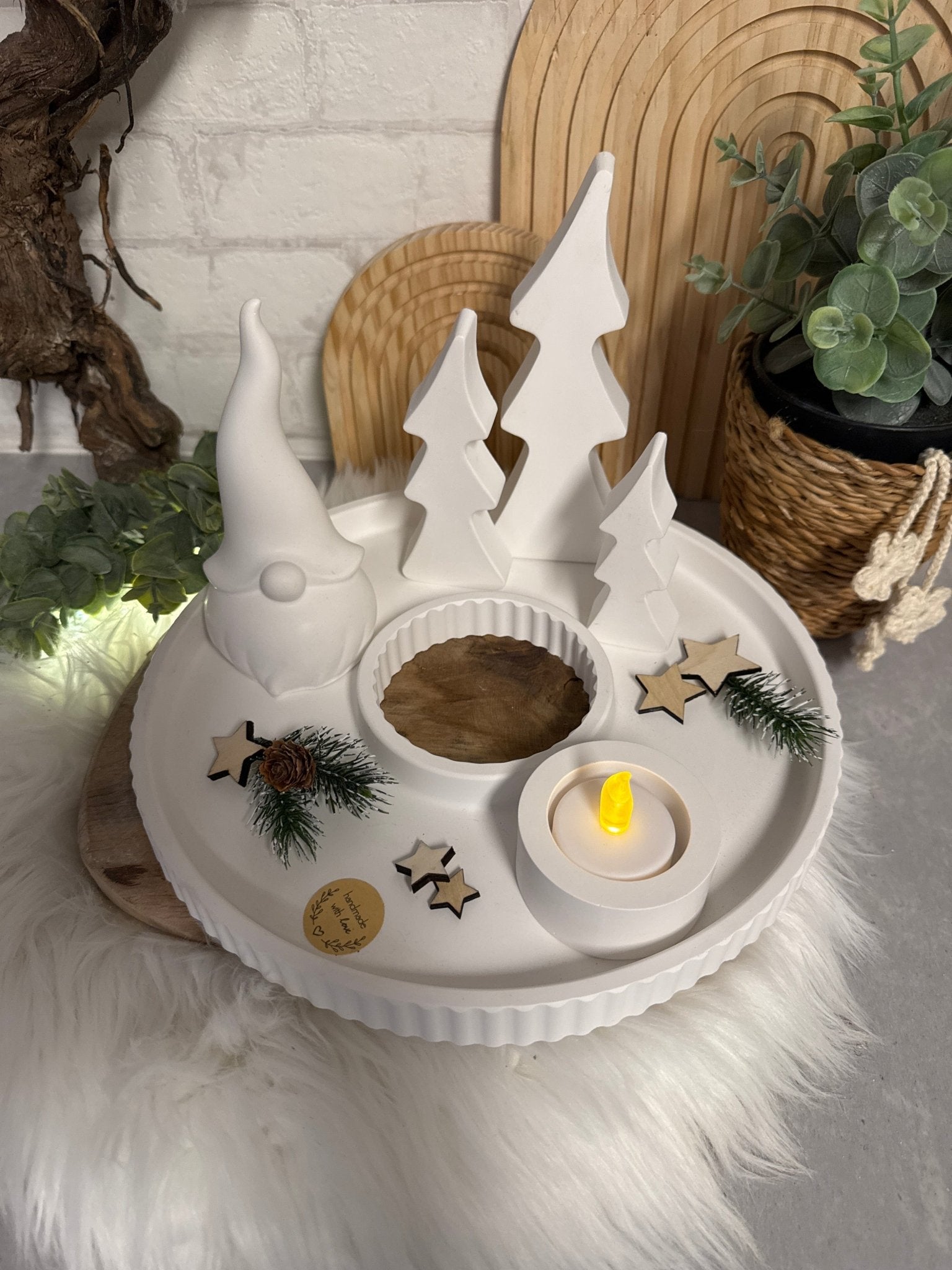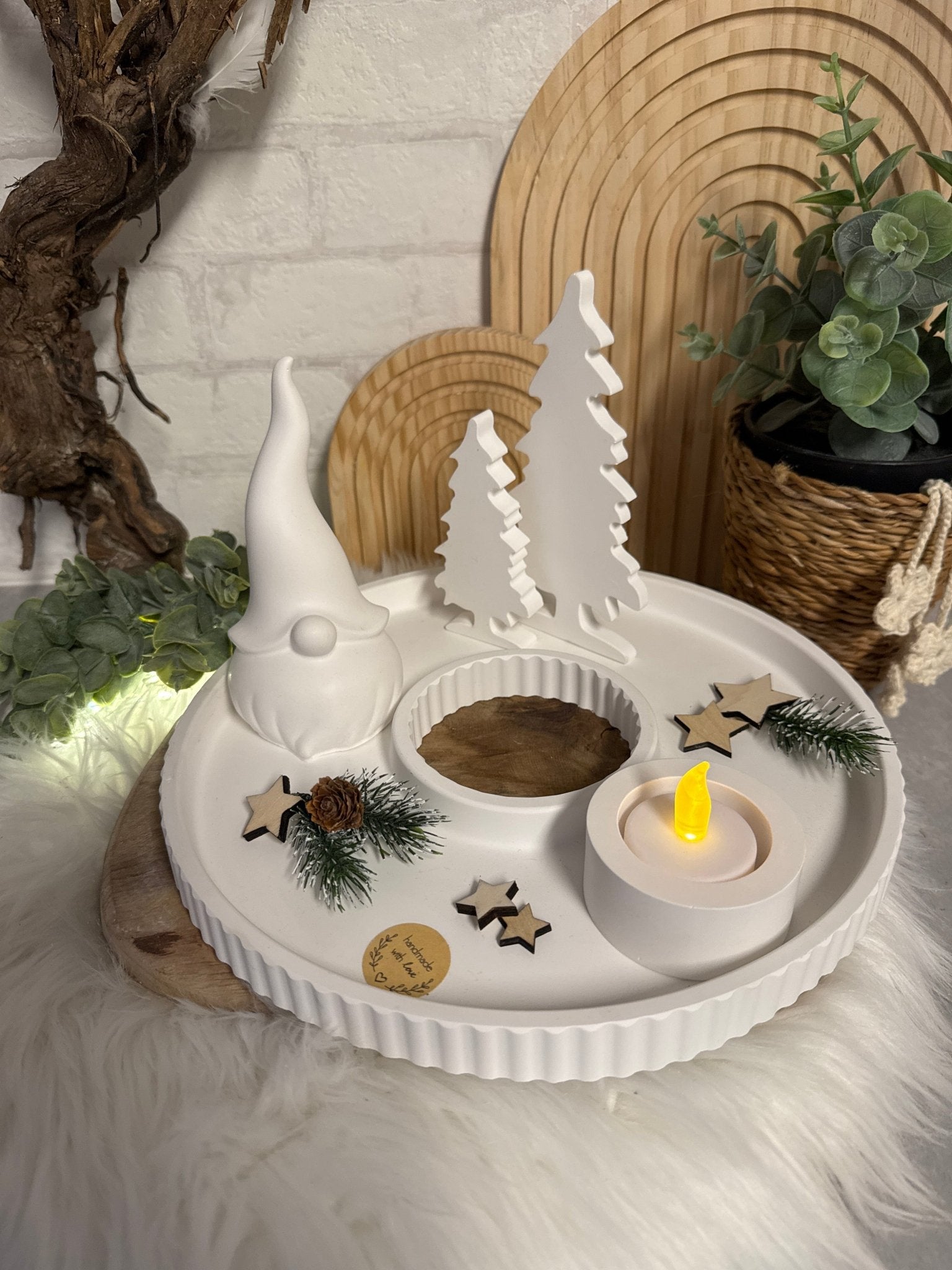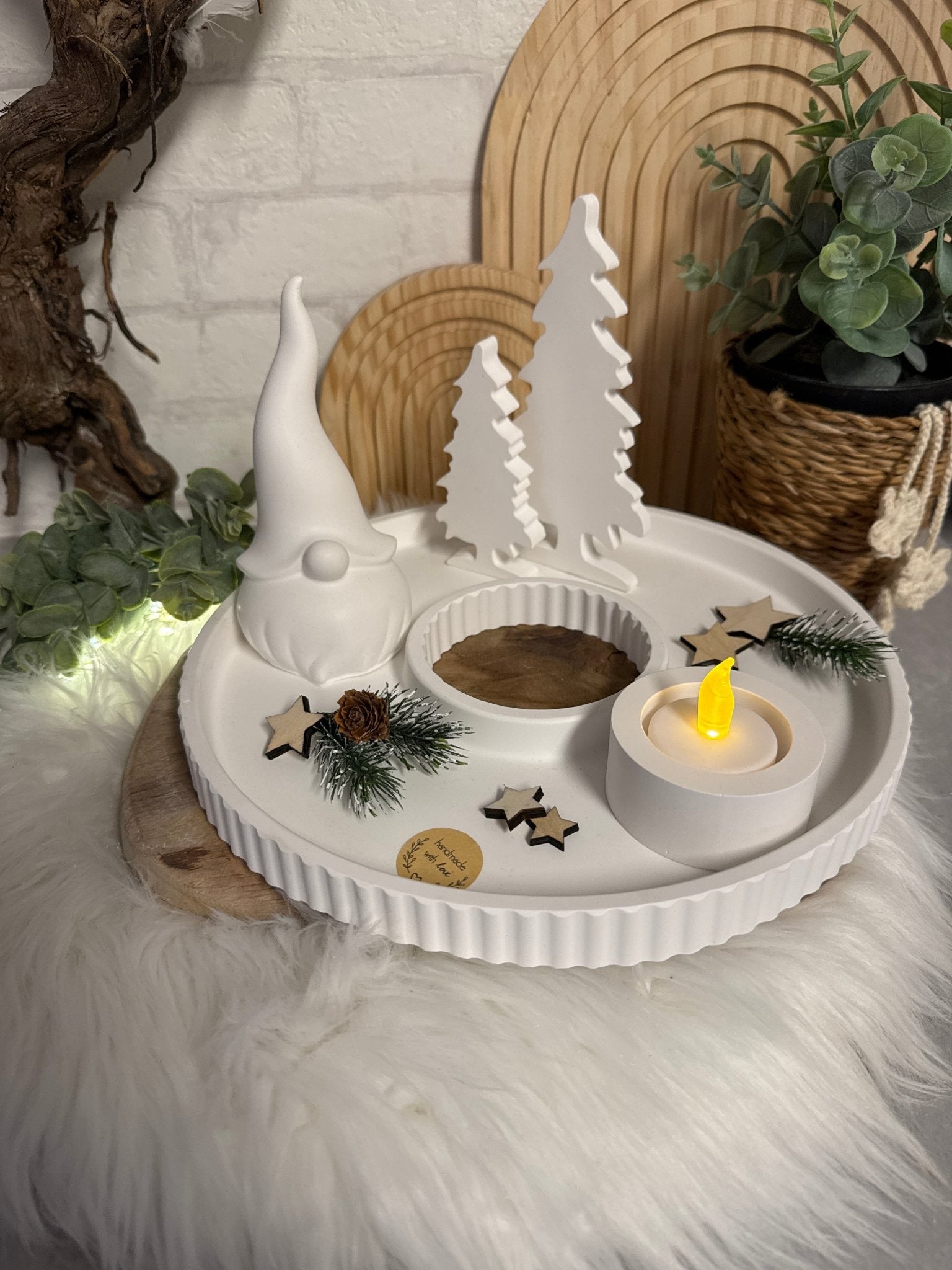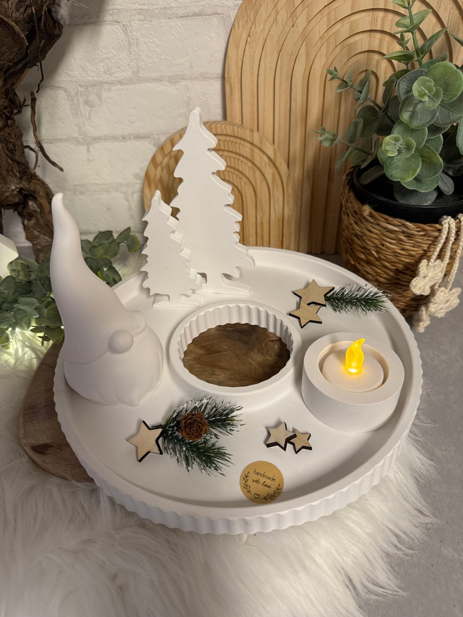 Skandinavisches Winter-Deko-Set mit Tablett, Gnom & Kerzenhalter