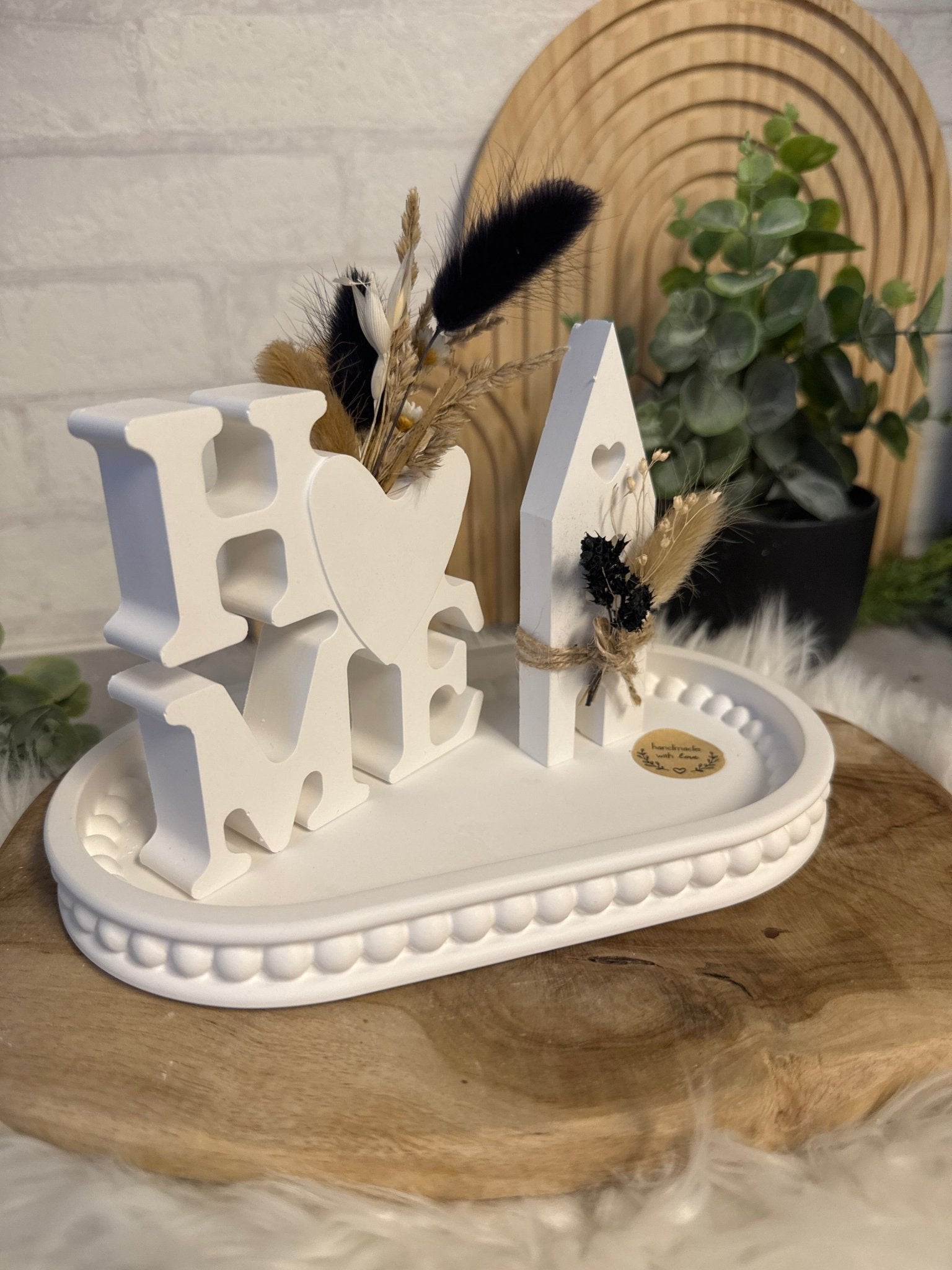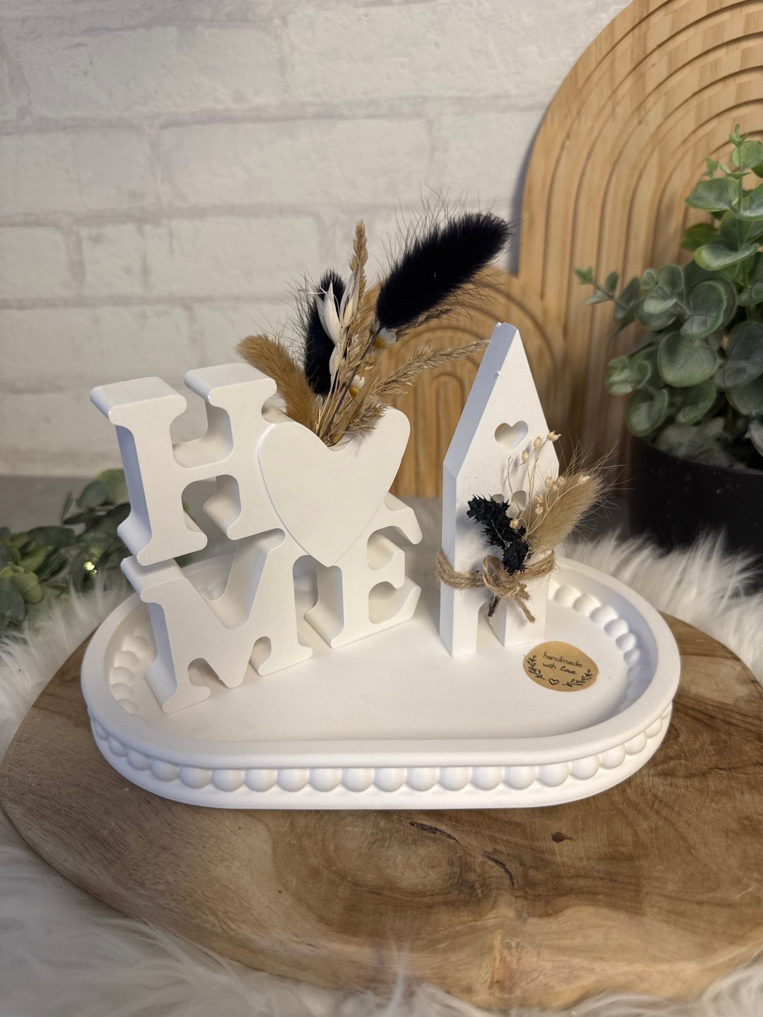 Größen: Tablett 20 × 12 cm | Schriftzug „Home“ 10 × 10 cm | Herz 5 × 4,5 cm