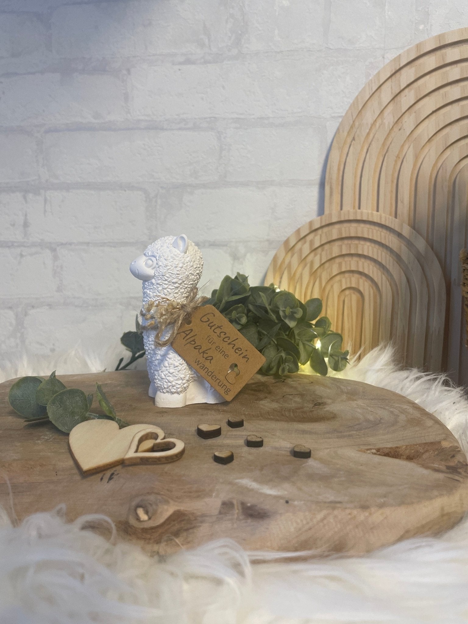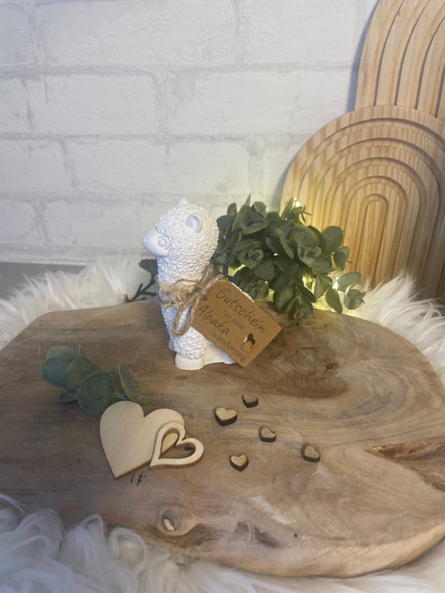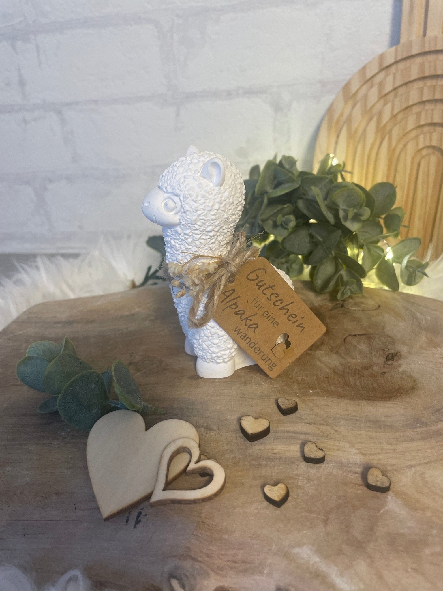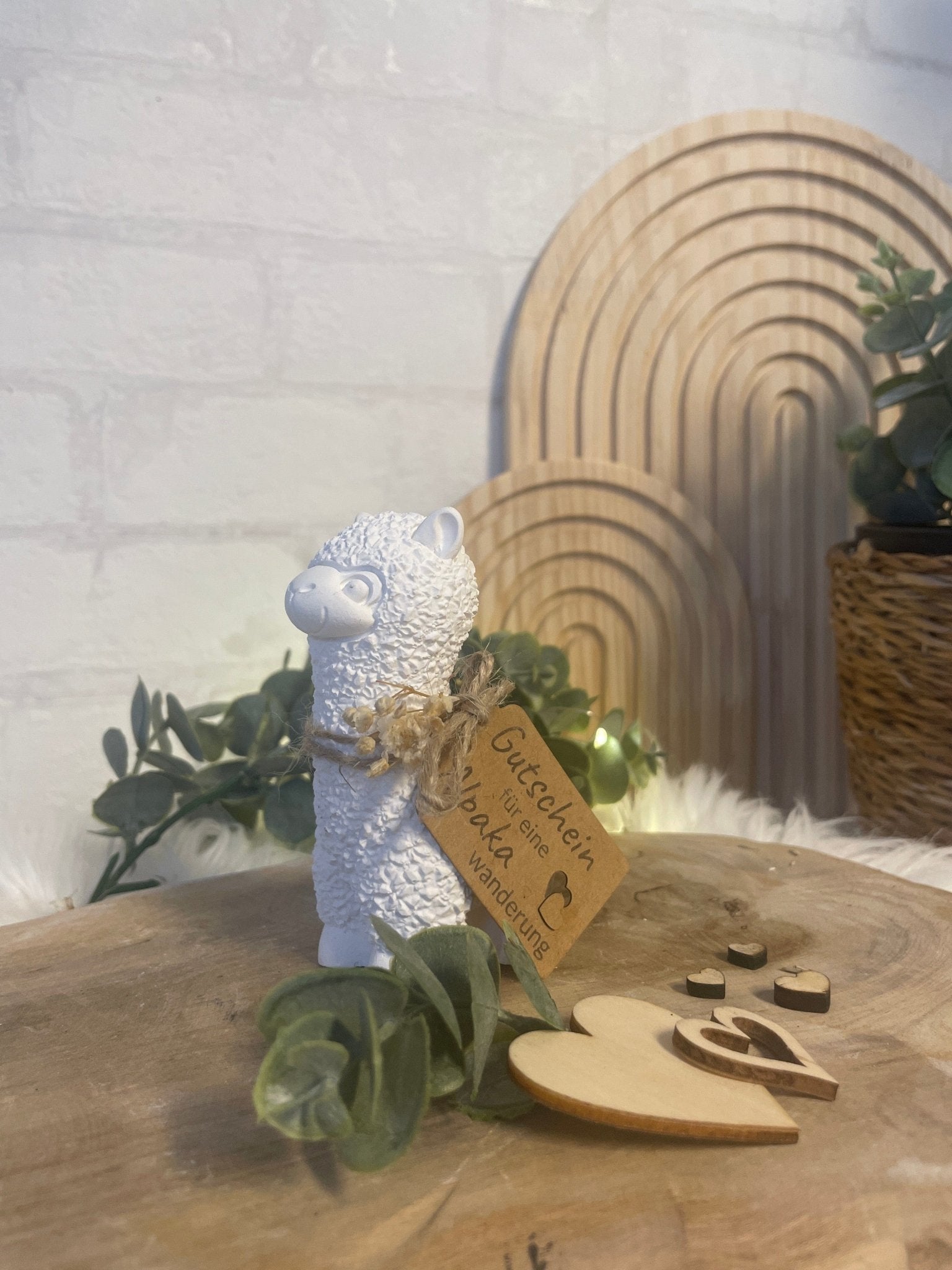Verschenke unvergessliche Momente mit dieser liebevoll gestalteten Alpaka-Figur inklusive Gutscheinanhänger!