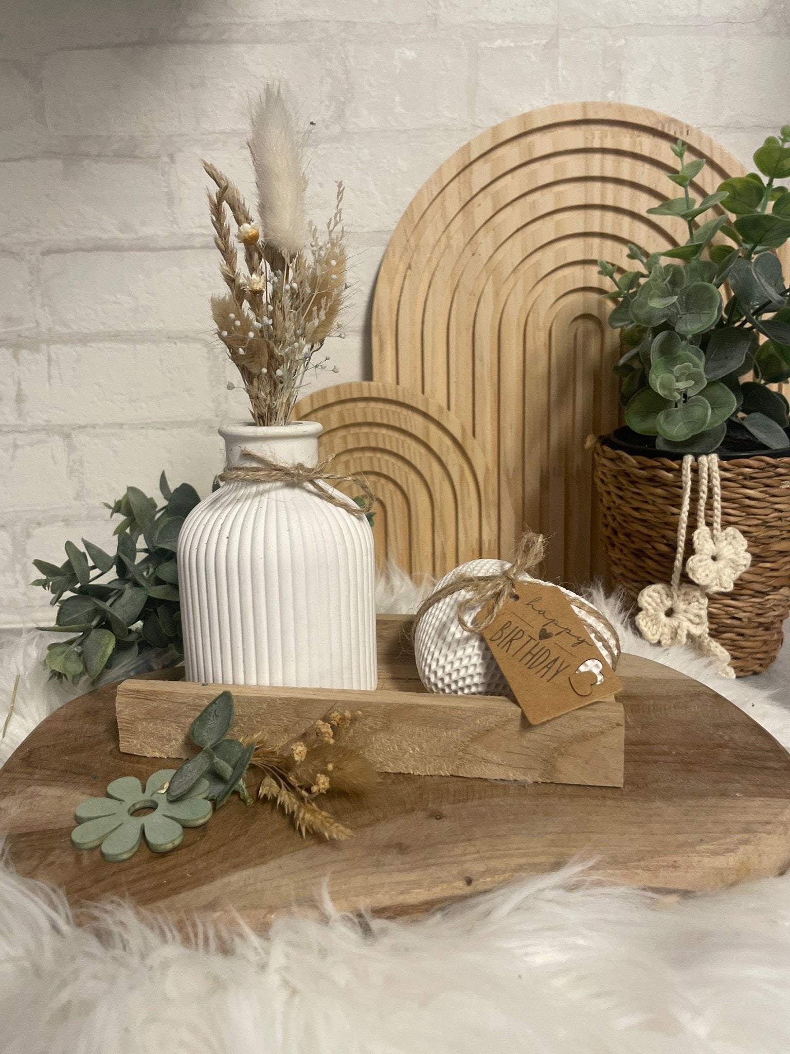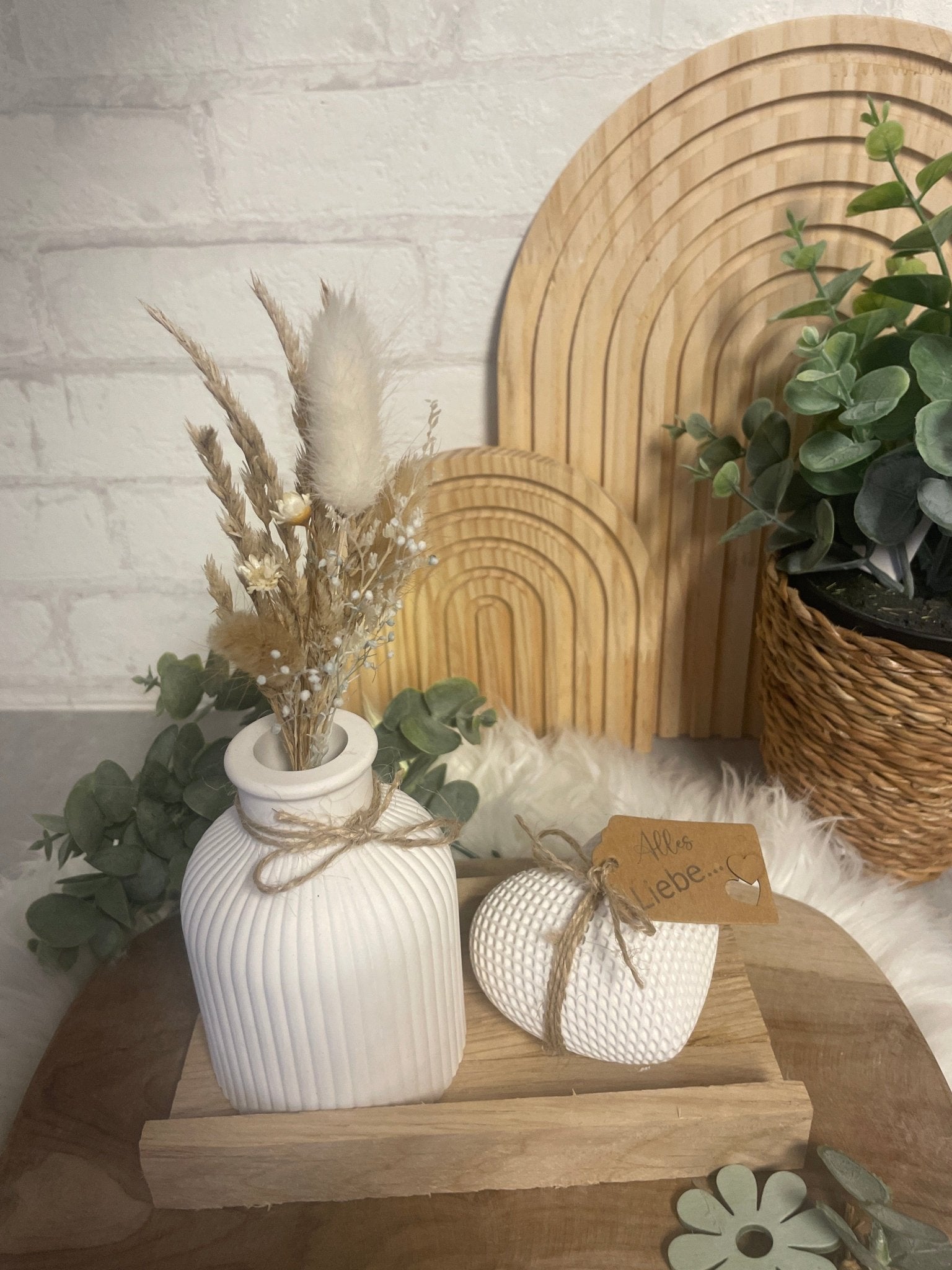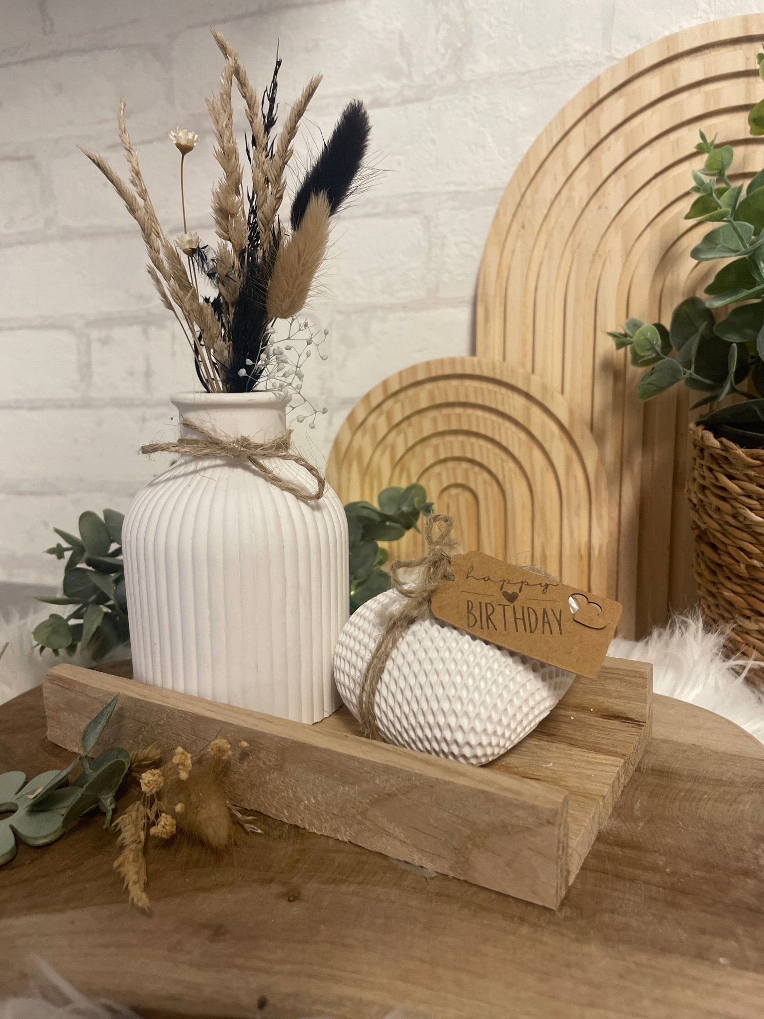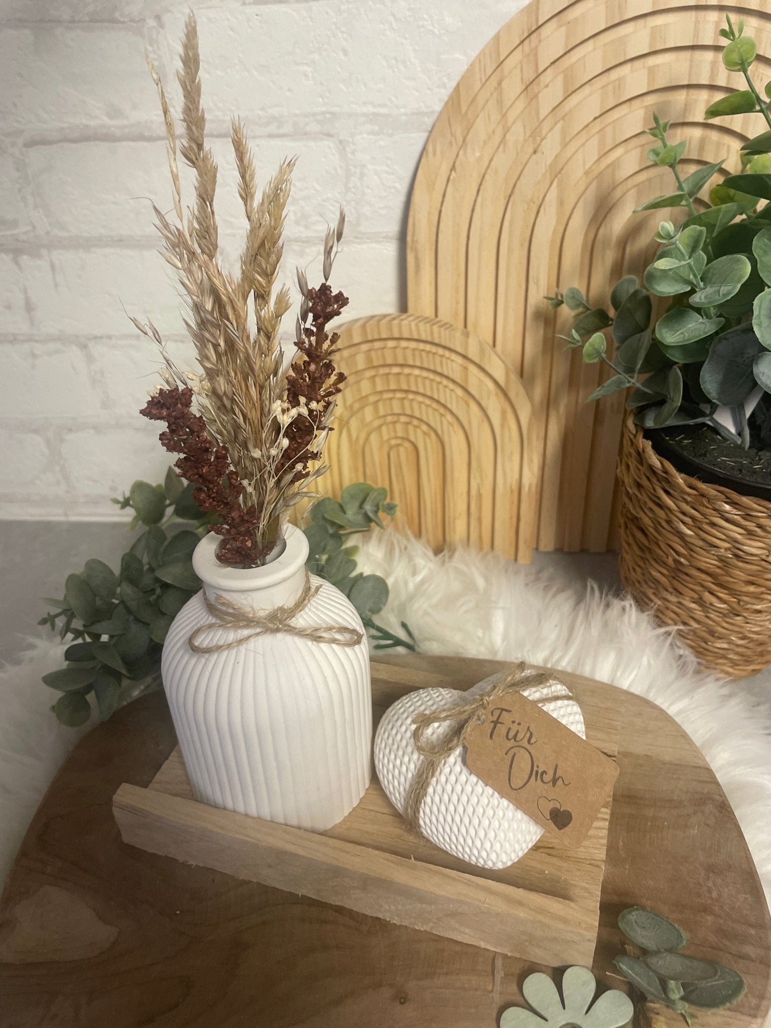 Geschenkset Herz-Vase mit Trockenblumen – Handgemachte Holzdeko