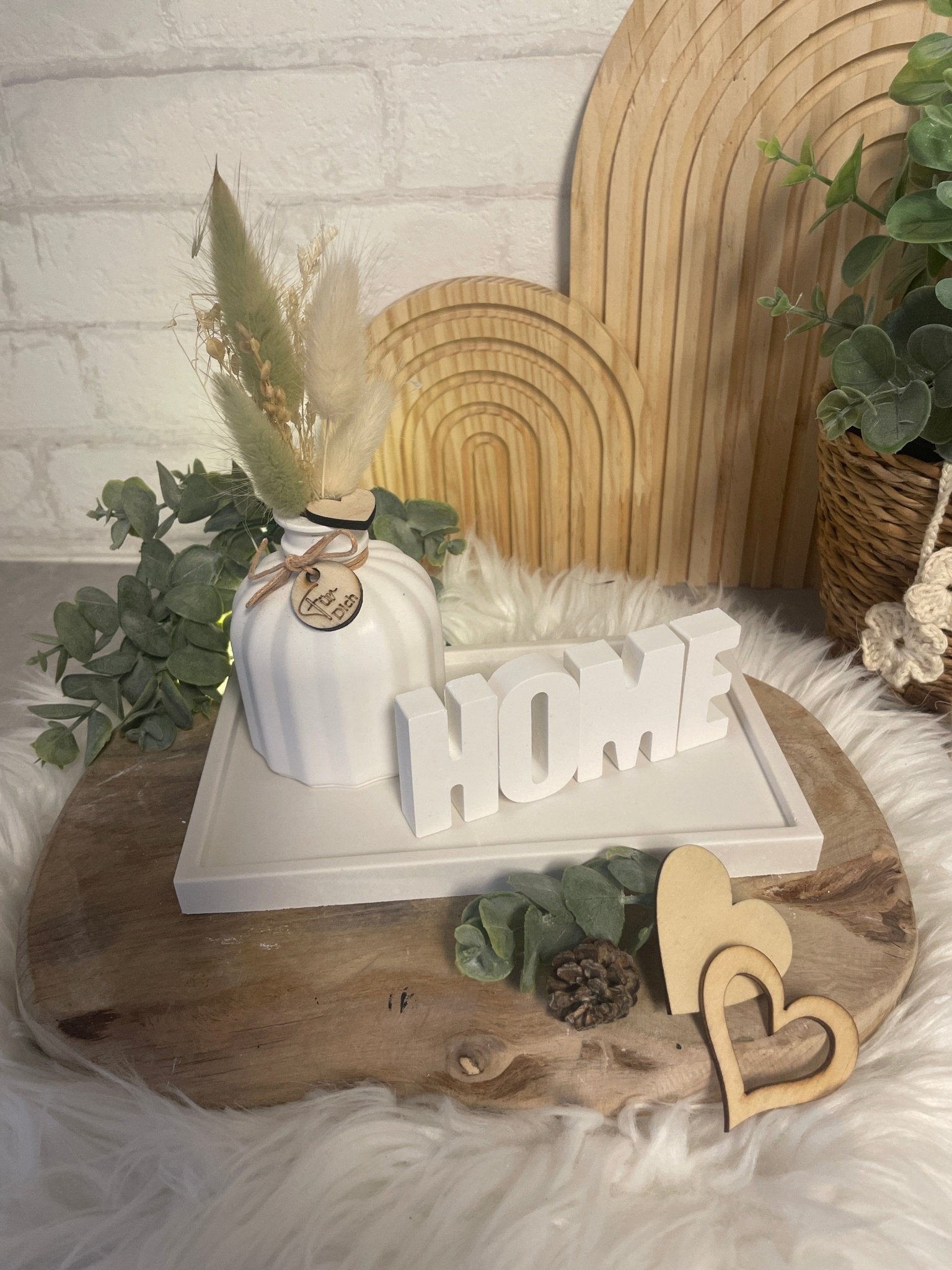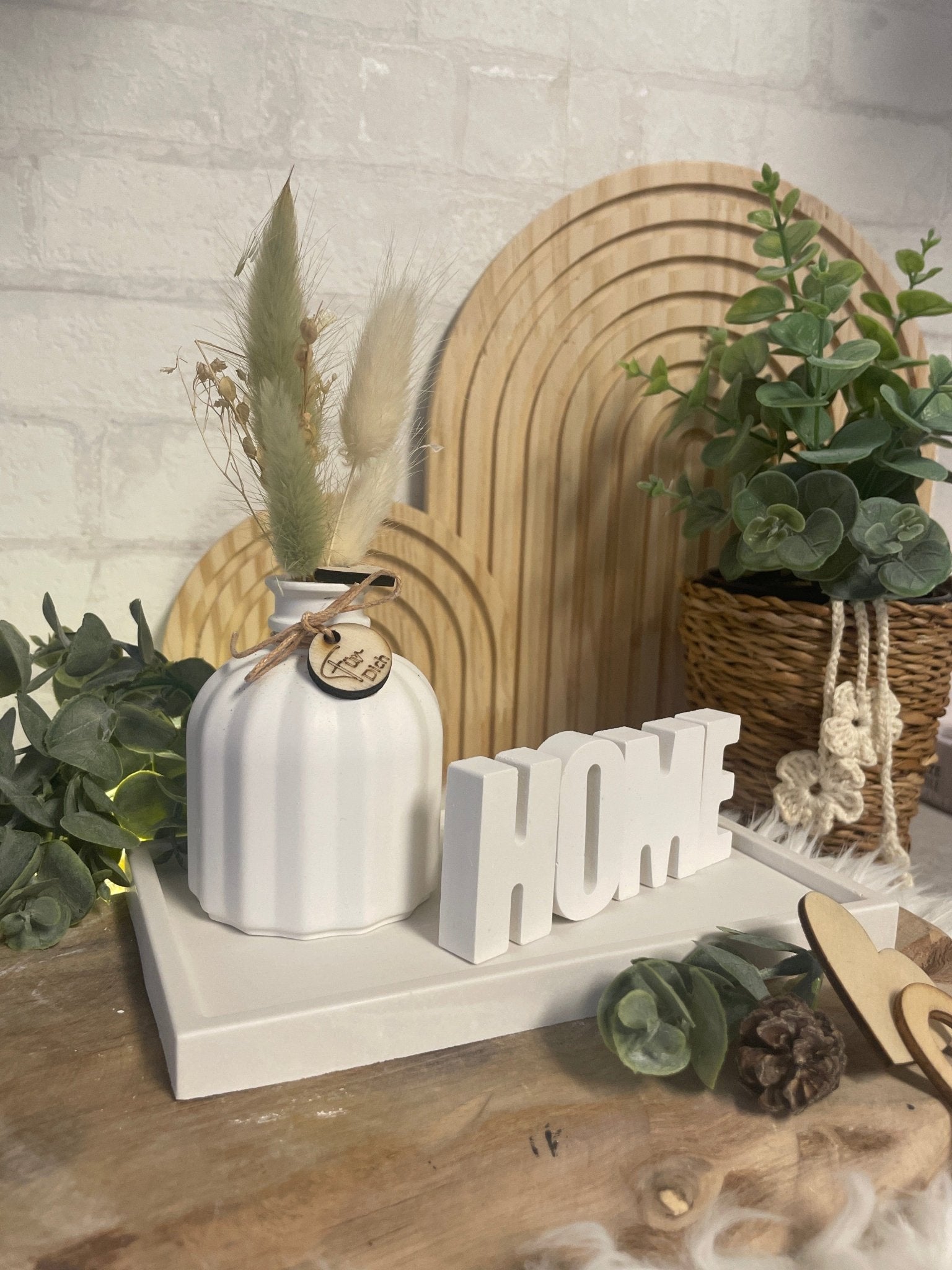 Deko-Set mit Vase, Trockenblumen & „Home“-Schriftzug – Geschenkidee