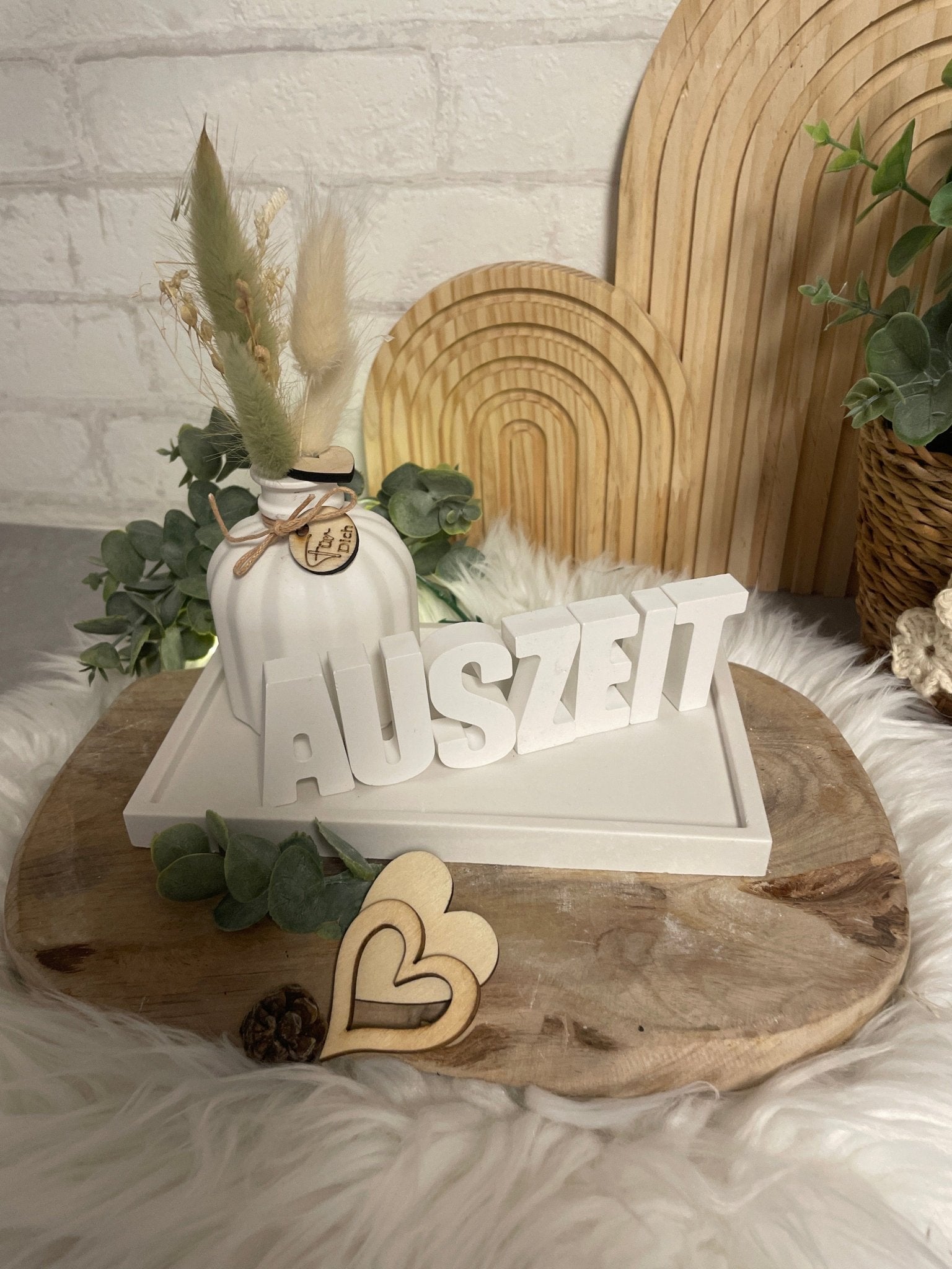 Tablett 18 x 10 cm, Vase 6 x 8 cm, Home 11 x 4 cm, Trockenblumen, Holzsticker " Für Dich".