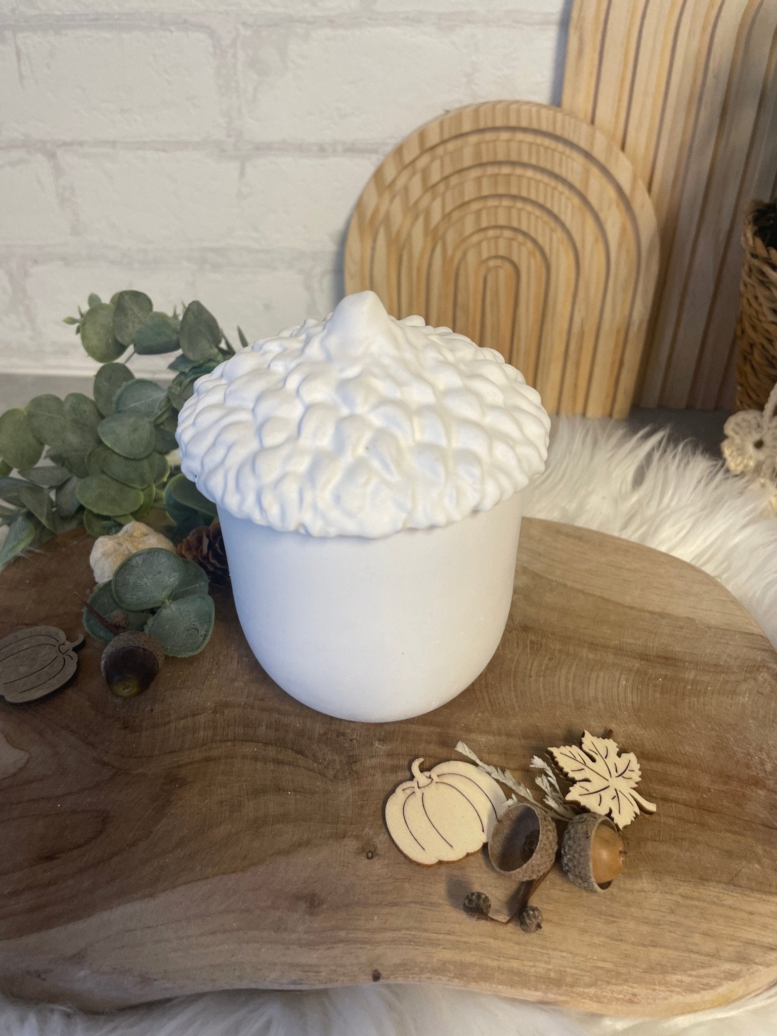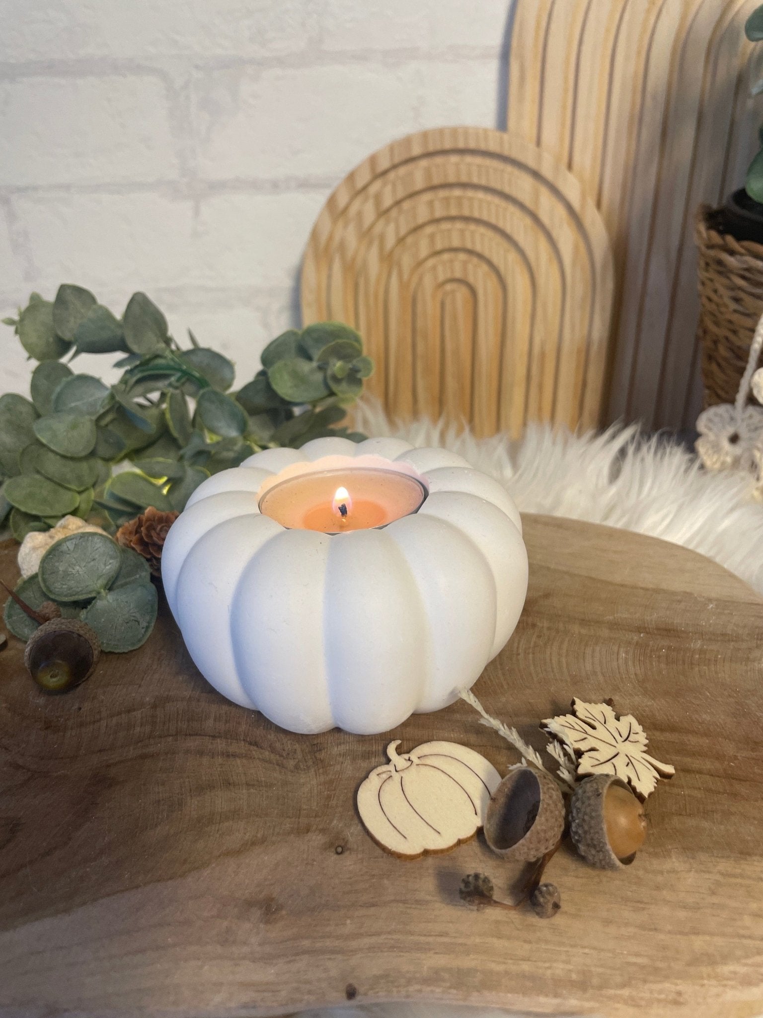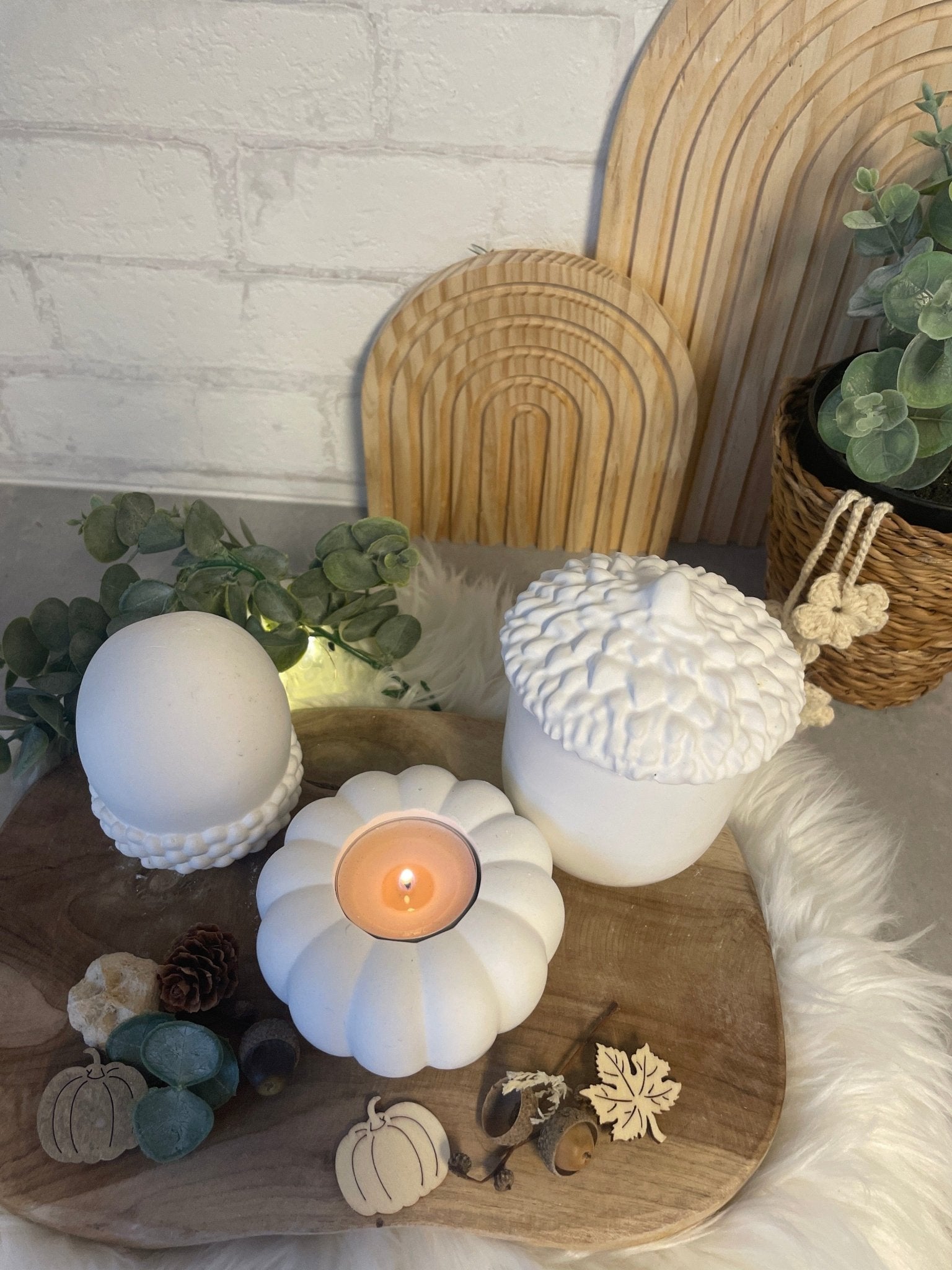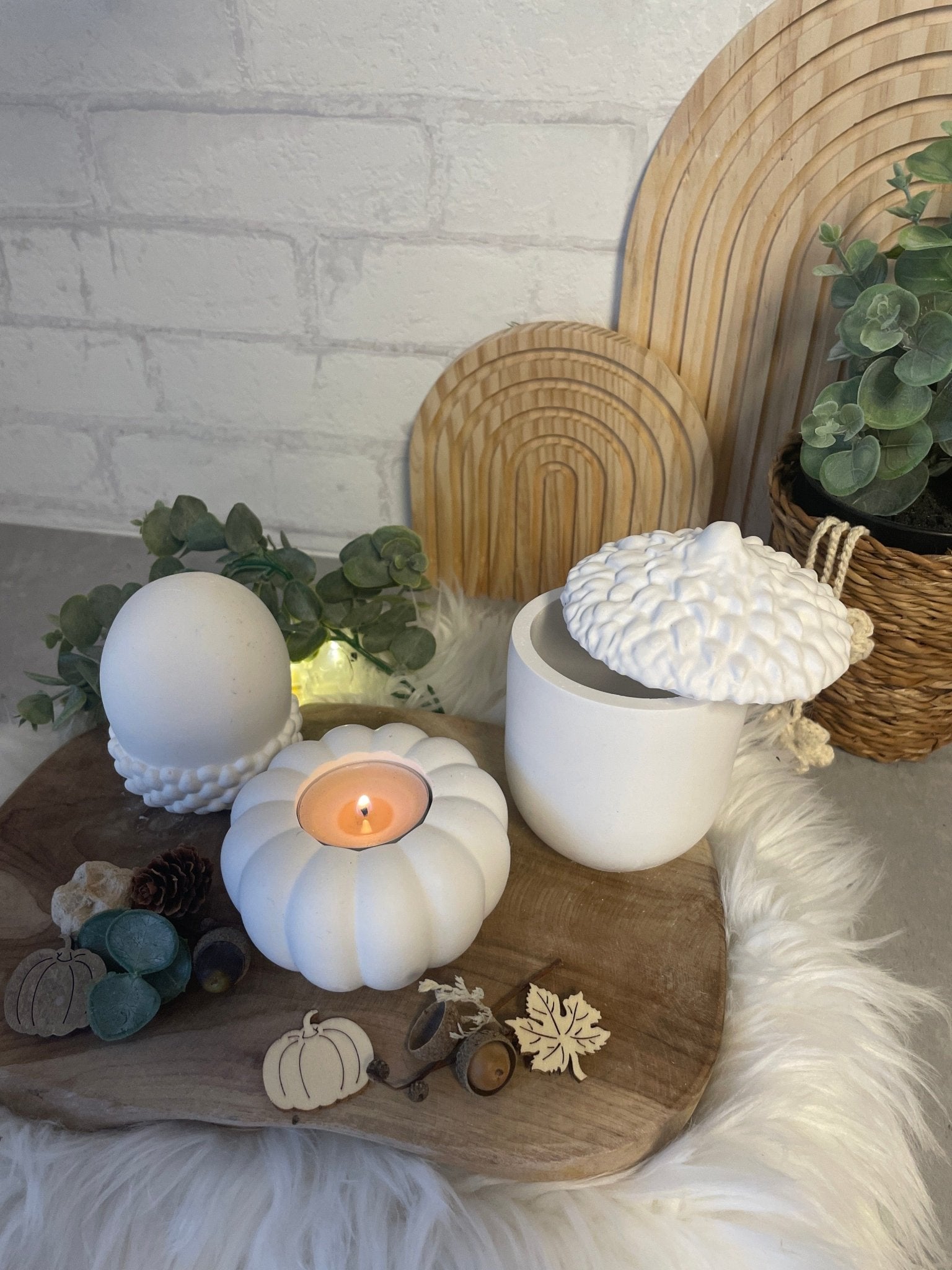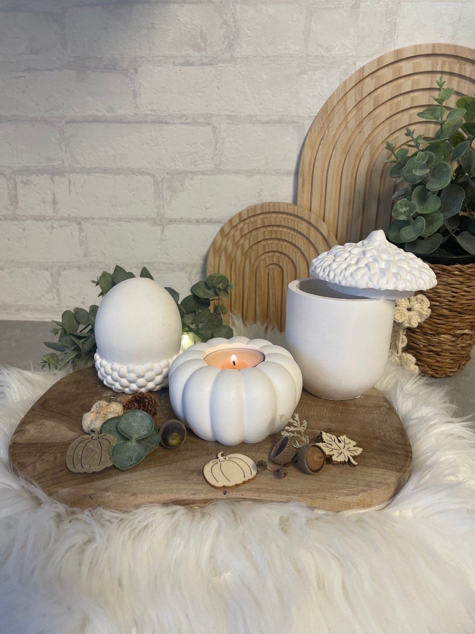 Herbstliche Deko im Keramiklook – Kürbis-Teelichthalter & Eichel-Set Weiß