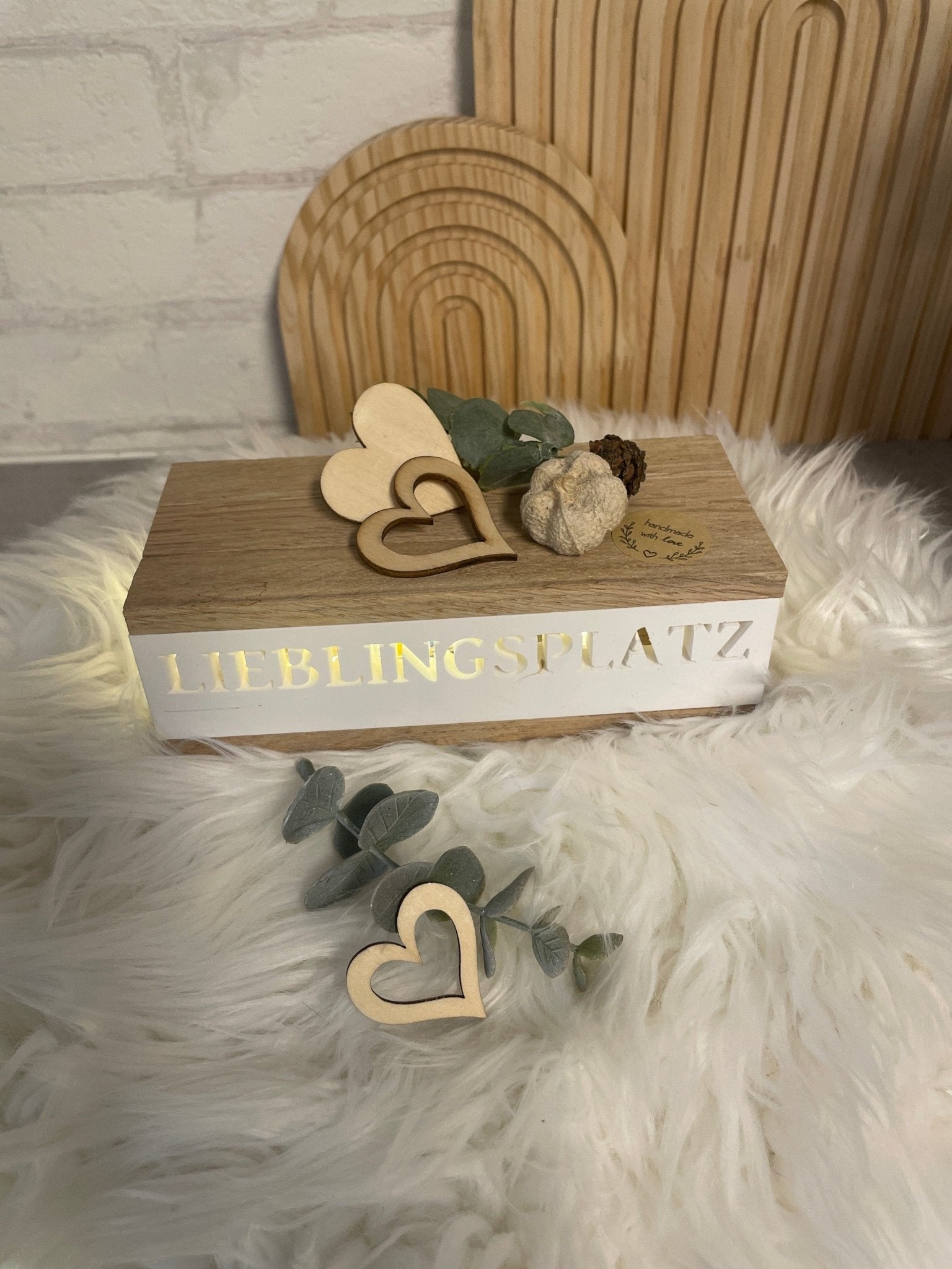 LED Lichtbox „Lieblingsplatz“ aus Holz – Stimmungslicht & Deko Geschenk