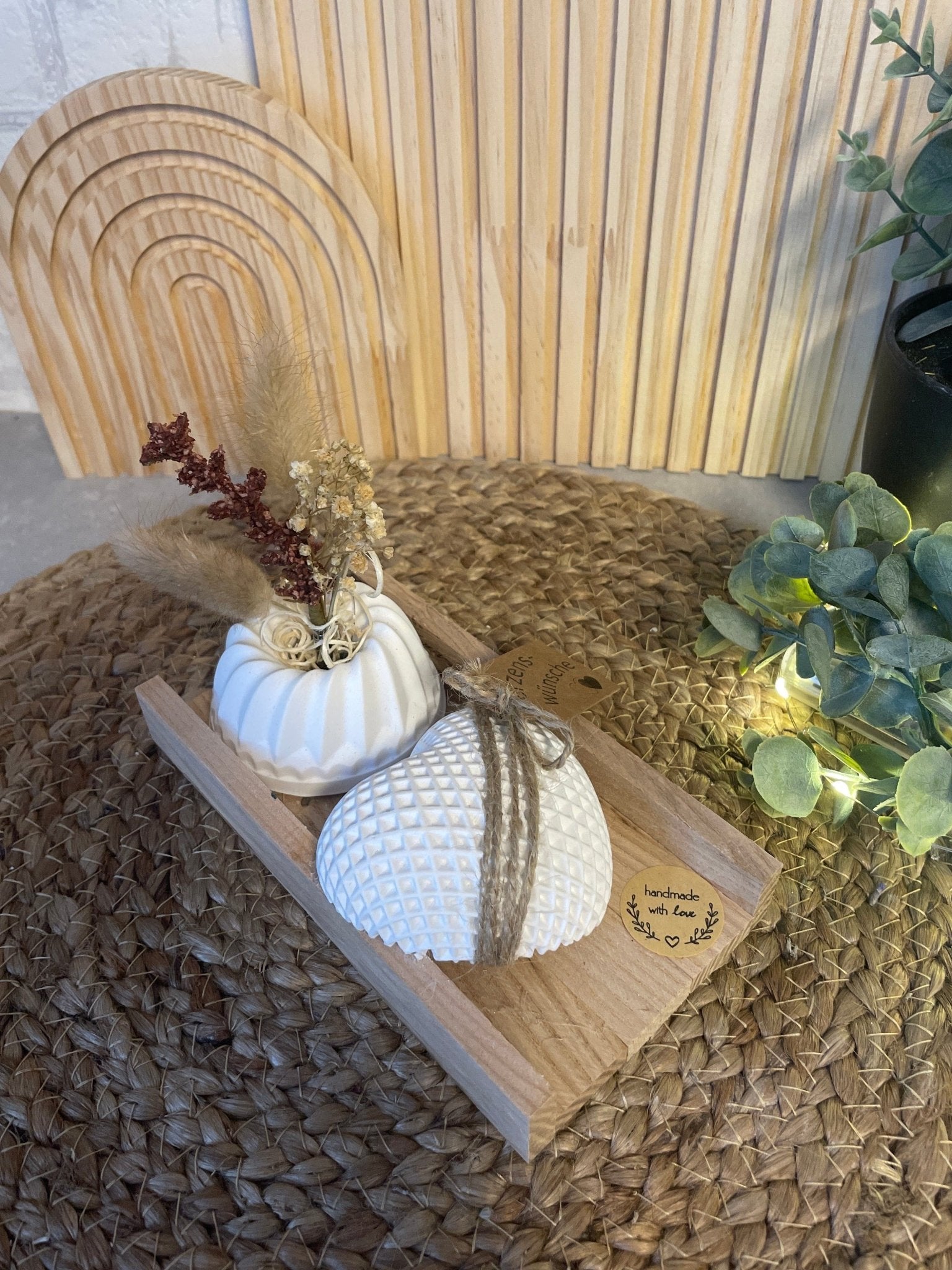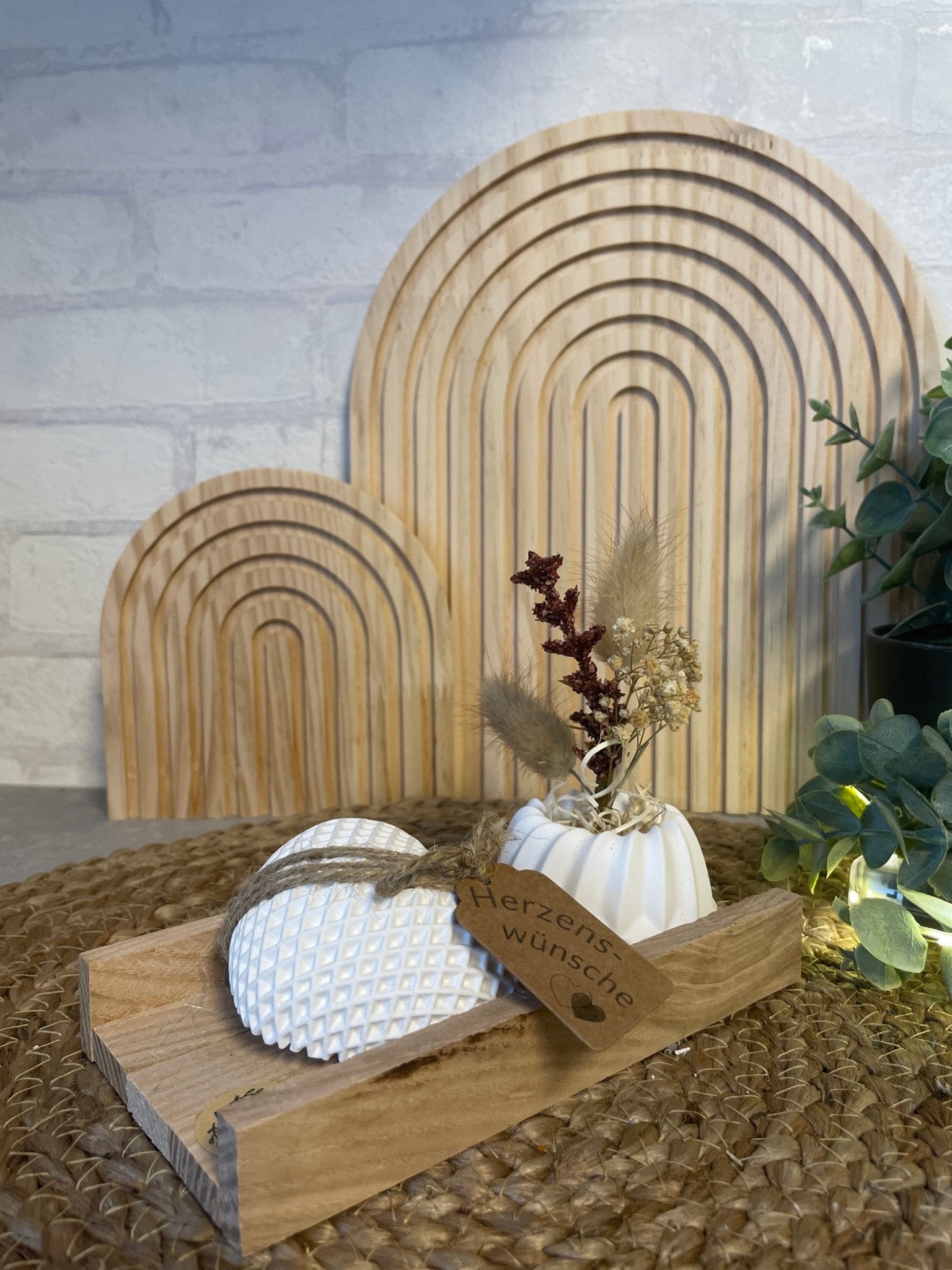 Schönes Holztablett mit Keraflott Herzen und einen Kerzenständer mit Trockenblumen kombiniert, ist die ideale Wahl für eine stillvolle und ästhetische Fensterbank-Dekoration. Das elegante Design und feine Verarbeitung machen sie zu einem herausragenden Dekoelement, das sowohl moderne als auch klassische Einrichtungsstille ergänzt.