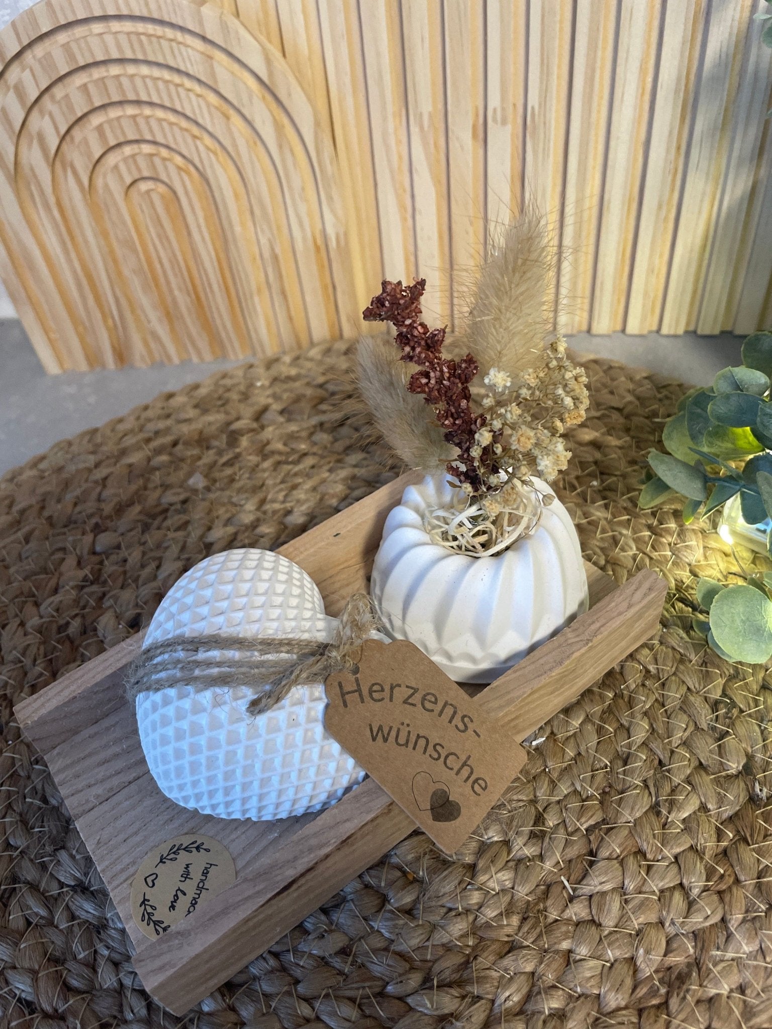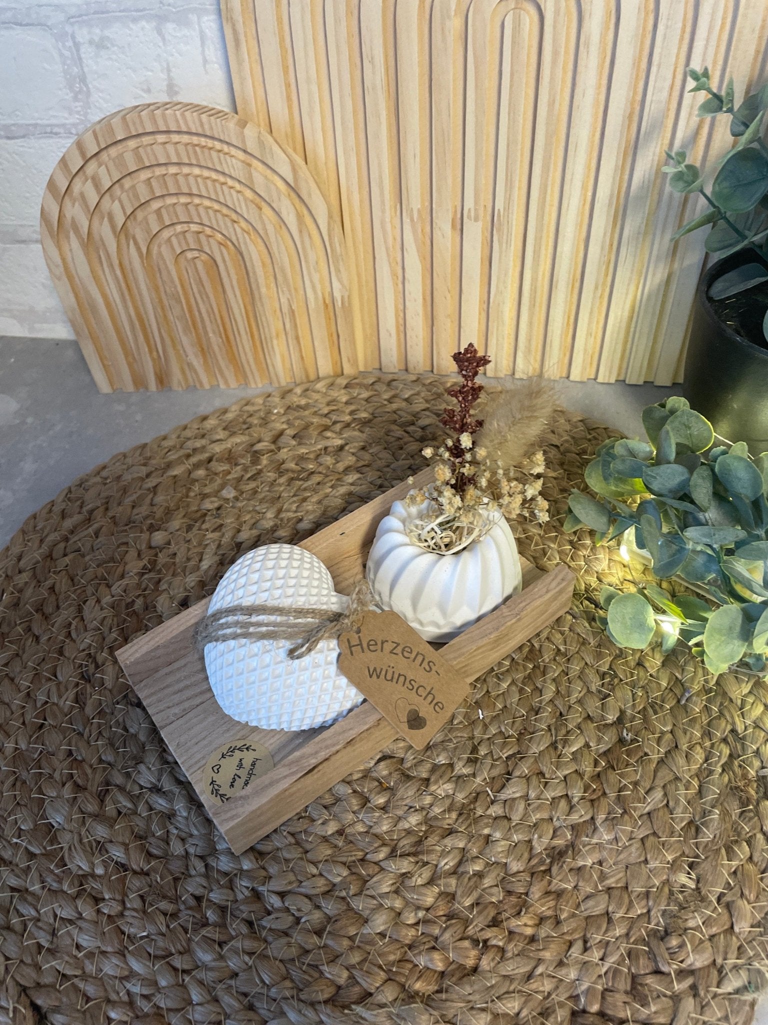 Tablett Set mit Pustekuchen und Herz-Geschenk Set Damen Handmade